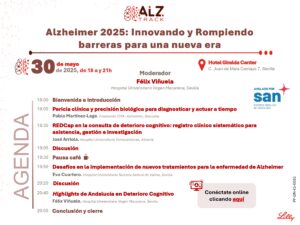 Alzheimer 2025: Innovando y Rompiendo barreras para una nueva era Agenda ALZTRACK 30 mayo_ONLINE + Añadir Google Calendar Exportación + iCal / Outlook El evento está terminado. Fecha May 30 2025 Finalizdo! Hora 18:00 - 21:00 Compartir este evento